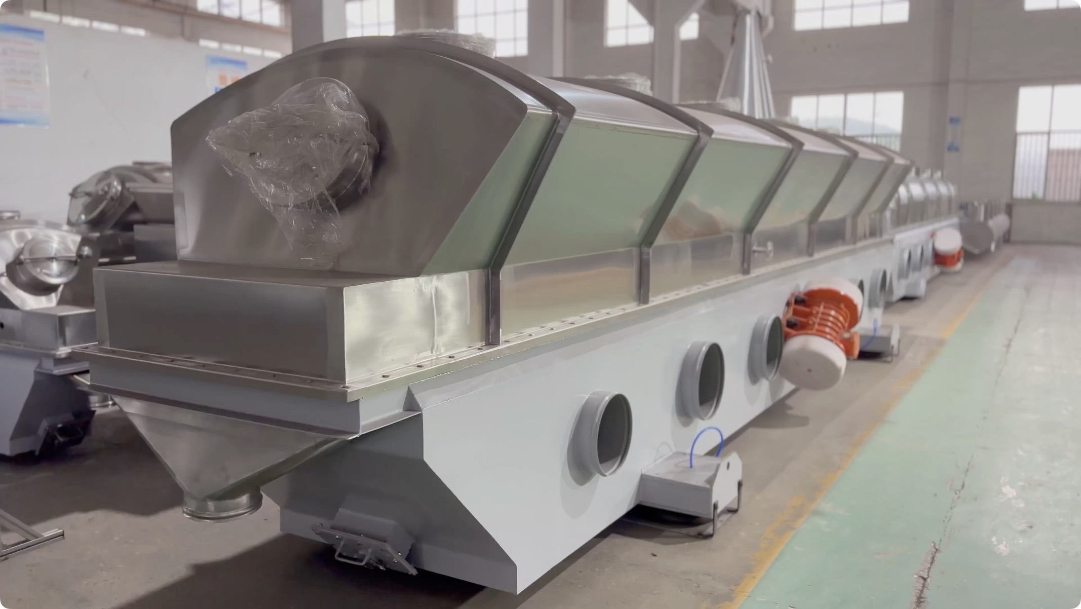 河沙经烘干筛分后可广泛用于各种干粉砂浆;比如保温砂浆、粘接砂浆和抹面砂浆就是以水洗、烘干、分级河沙为主要骨料的。强度近似于用石英砂做的砂浆。对于烘沙厂来说一个优质的河沙烘干机是就是他们的摇钱树。由于传统干燥技术受限,产品品质一直无法得到提高。因此,常州润凯干燥致力于提高干燥技术,终于在长期的研究和实验之后克服了传统干燥法的缺点。根据河沙的产品特性选用振动流化床干燥机,该套干燥机温度控制在55℃左右, 直接从含水量10%干燥至0.5%,年处理量可达到50000吨。