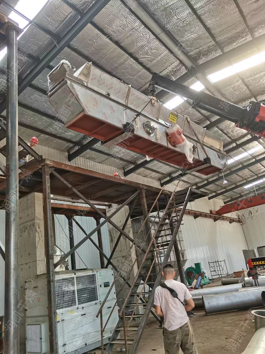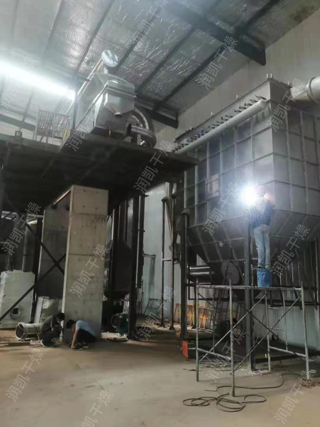 走进综合厂房,常州润凯干燥的师傅们正在施工和设备安装调试,工地上一派繁忙景象,现场机声隆隆,施工人员忙碌奋战、抢抓时效,争取项目早日投产达效。